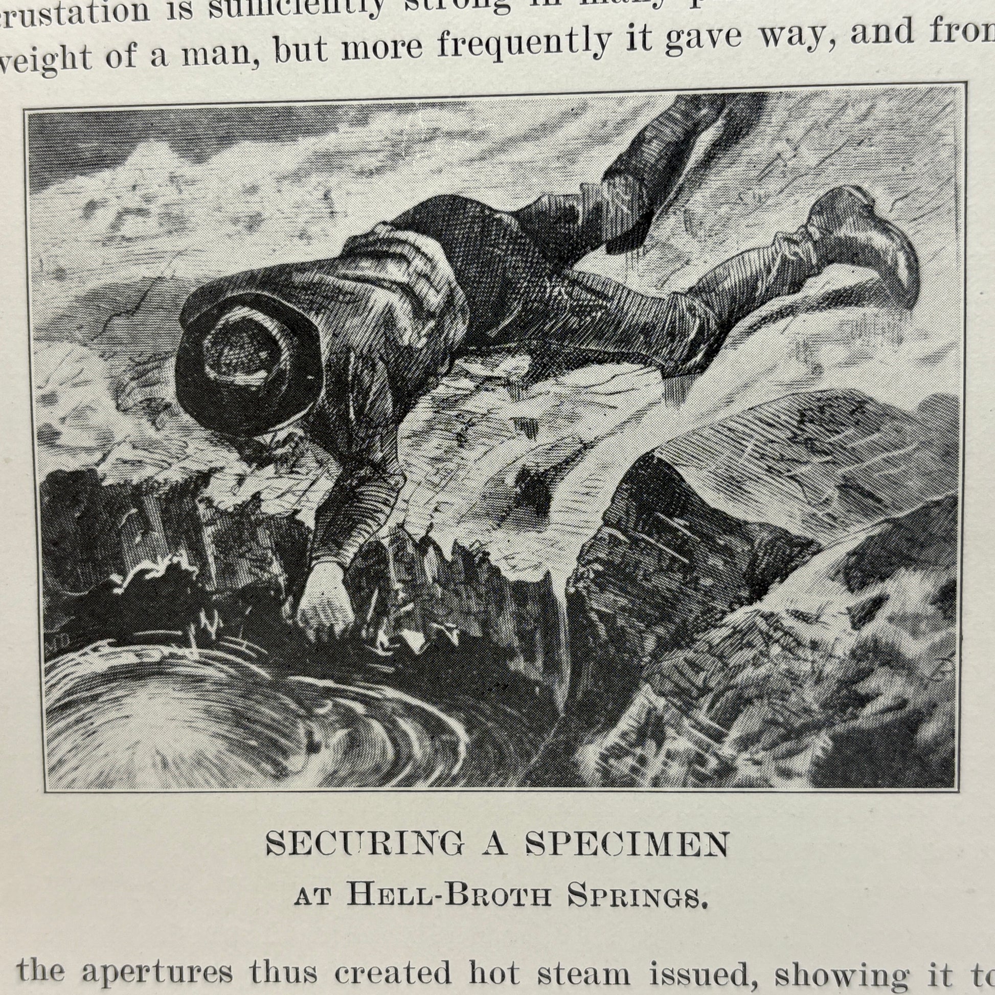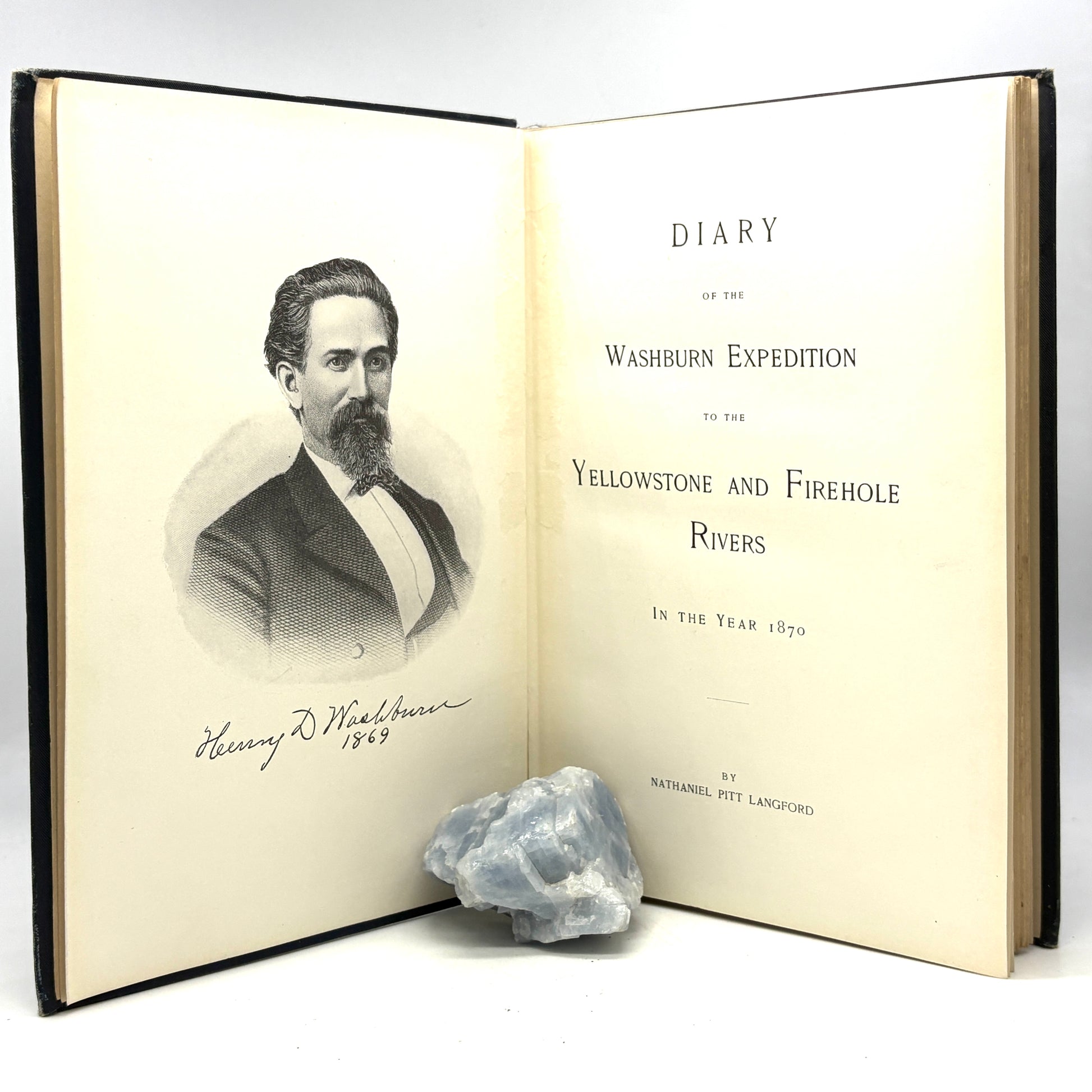 Nathanial Pitt Langford, 1905. First edition. 8.25" x 6", xxxi + 122pp. Illustrated with a frontispiece portrait of Henry D. Washburn and 45 full-page and in-text halftone illustrations/maps documenting the 1870 Washburn Expedition, including scenes at Hell-Broth Springs, camps, geyser basins, and early exploration activity. Original dark blue cloth, gilt-lettered and pictorially stamped in gilt on the upper board with an expedition scene; gilt spine lettering. Cloth lightly rubbed at extremities with minor surface wear and a few small scuffs, corners gently bumped, spine ends slightly frayed; gilt still bright. Hinges sound, binding firm. Contents clean overall with light, even toning, scattered foxing, and several contemporary ink inscriptions and pencil notes to preliminary and rear blanks, including an illustrated bookplate from Madge E. Harkness and dated annotation from another owner. Very Good.