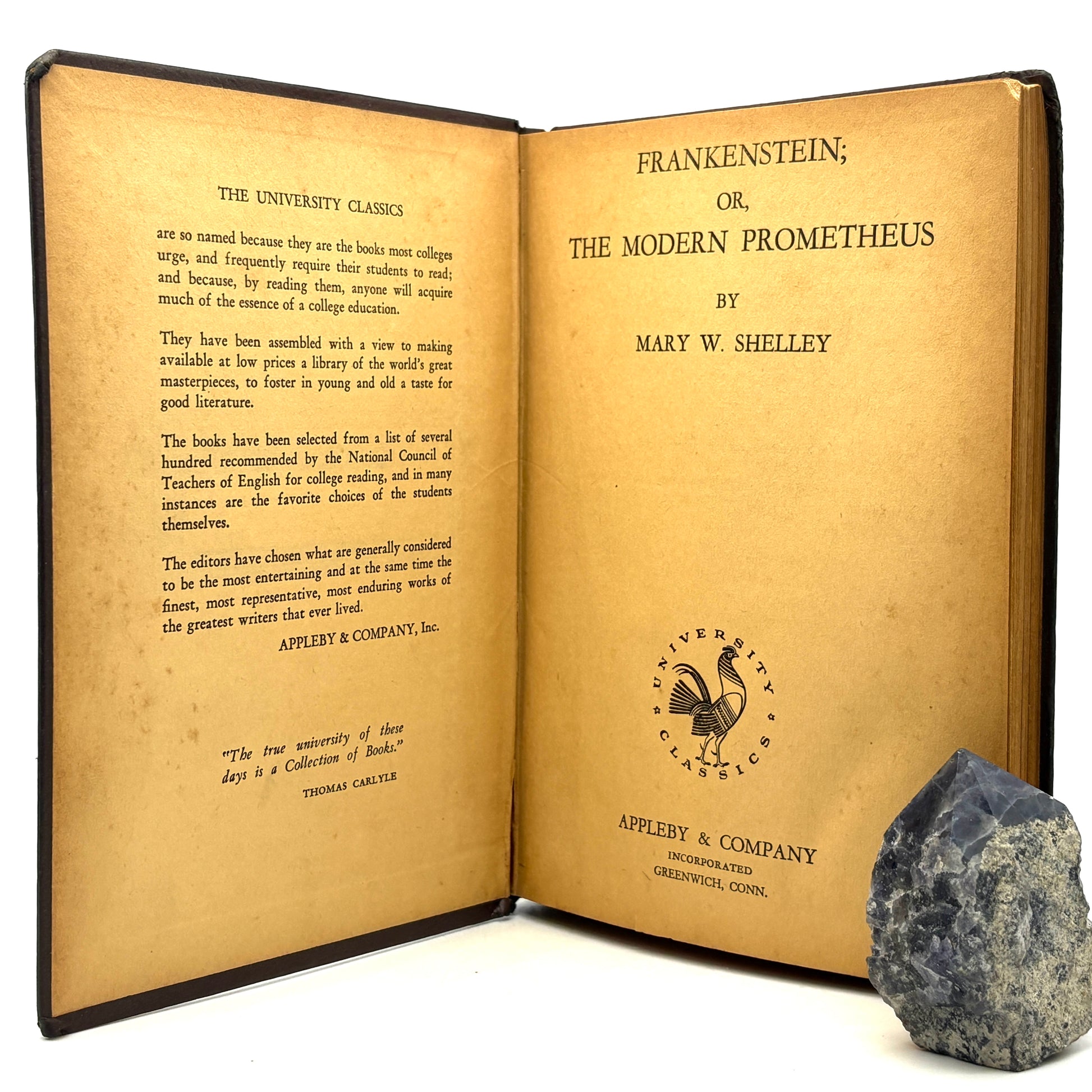 Early 20th-century American reprint of Shelley’s novel, issued as part of Appleby’s University Classics series, intended for affordable circulation of canonical literary works.