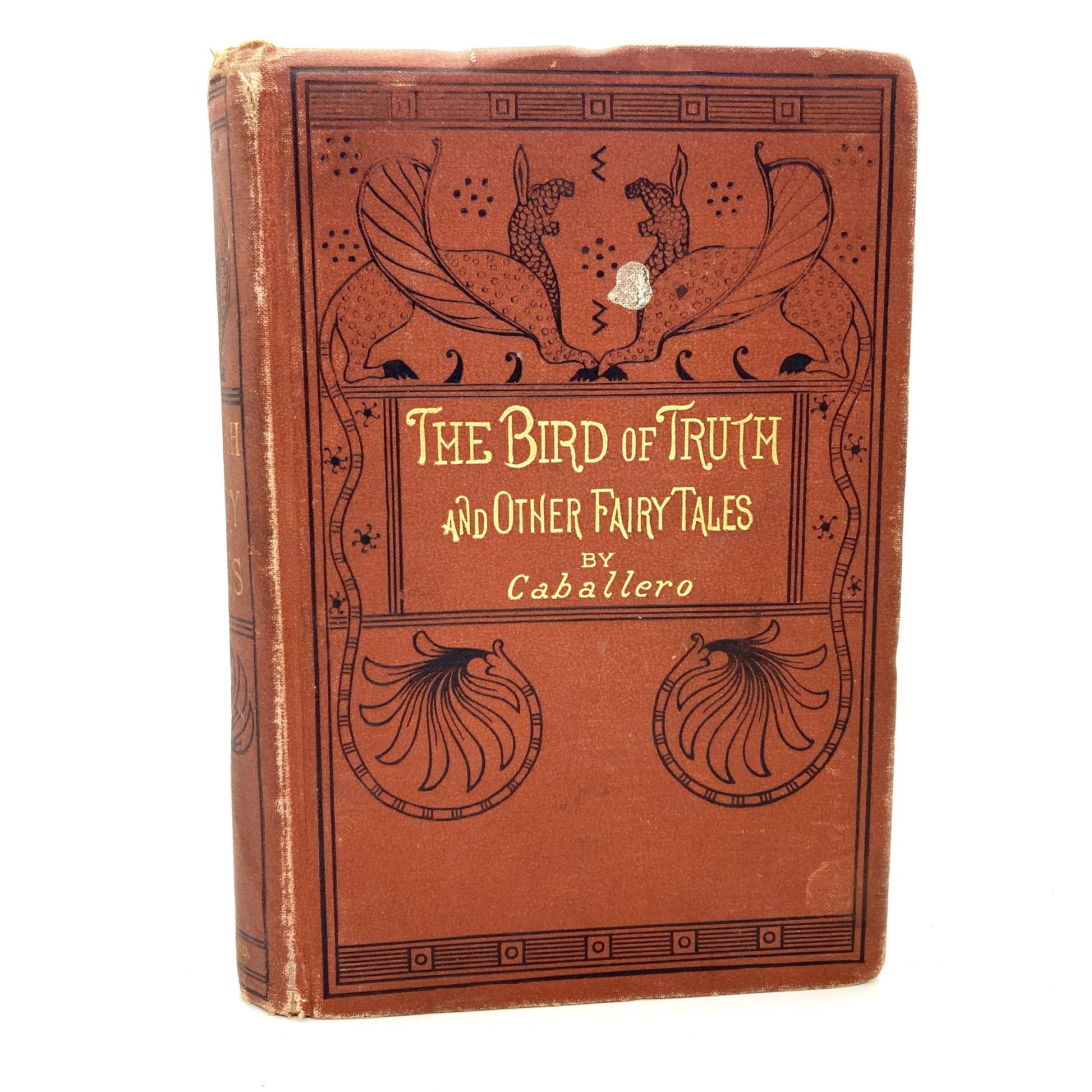 "The Bird of Truth and Other Fairy Tales" by Fernan Cabellero [J.B. Lippincott, n.d./c1880s]. 241pp + 8pp publishers catalog, and 6 illustrations. Cloth quite rubbed at head/tail and somewhat along edges. Hinges starting. Good and quite rare.
