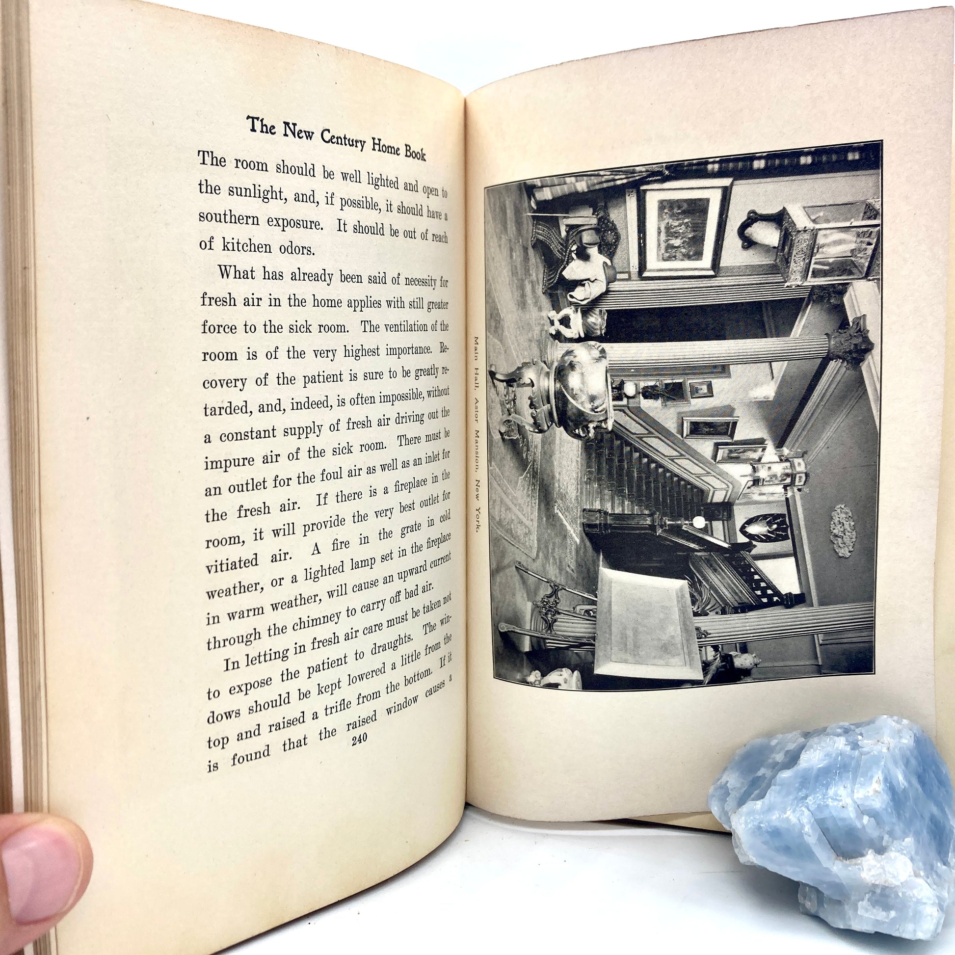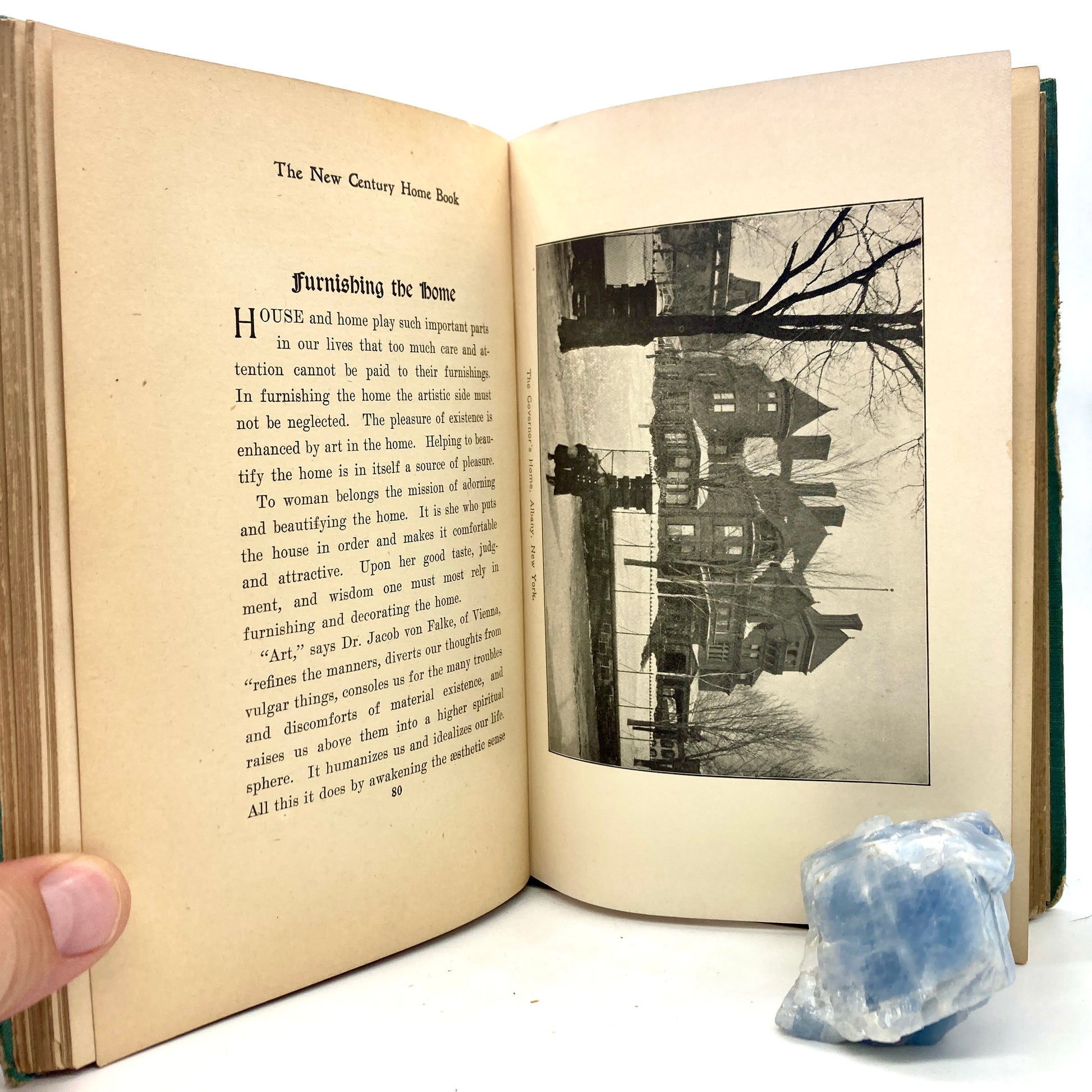 "The New Century Home Book, A Mentor for Home Life in All its Phase; a Chronicle of the Progress of America and the World; a Compendium of the Nation's Greatest City; and a Guide for the Great Army of Home-Builders" by Frank A. De Puy [Eaton & Mains, 1900]. 400pp. Covers a very wide range of topics but notably includes many recipes for candies and ice creams. Damage to the cover illustration and soiling to spine face, as pictured. Internally clean and complete. Good+.