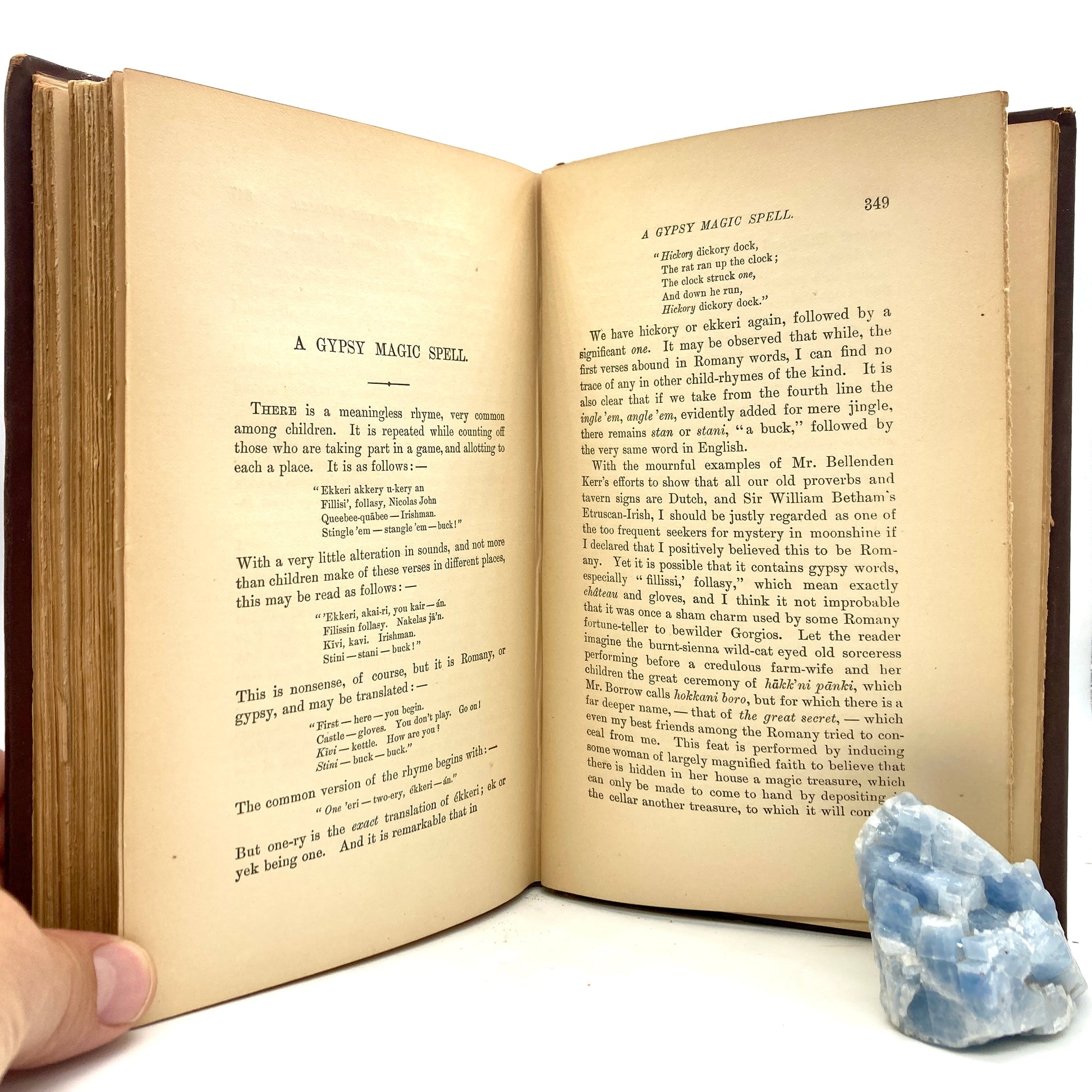"The Gypsies" by Charles G. Leland [Houghton, Mifflin, 1882]. First edition. 392 pages. A wide-ranging study of Romani culture, language, customs, and beliefs, drawing on folklore and personal observation. Includes material on Romani groups across Europe and a notable chapter on a so-called “Gypsy Magic Spell,” which details a magic-themed confidence trick. Front hinge starting to crack at the lower half; cloth is rubbed at head and tail of spine. A foundational—if dated—work in the 19th-century Western fascination with Romani life and esoteric traditions. Good+.