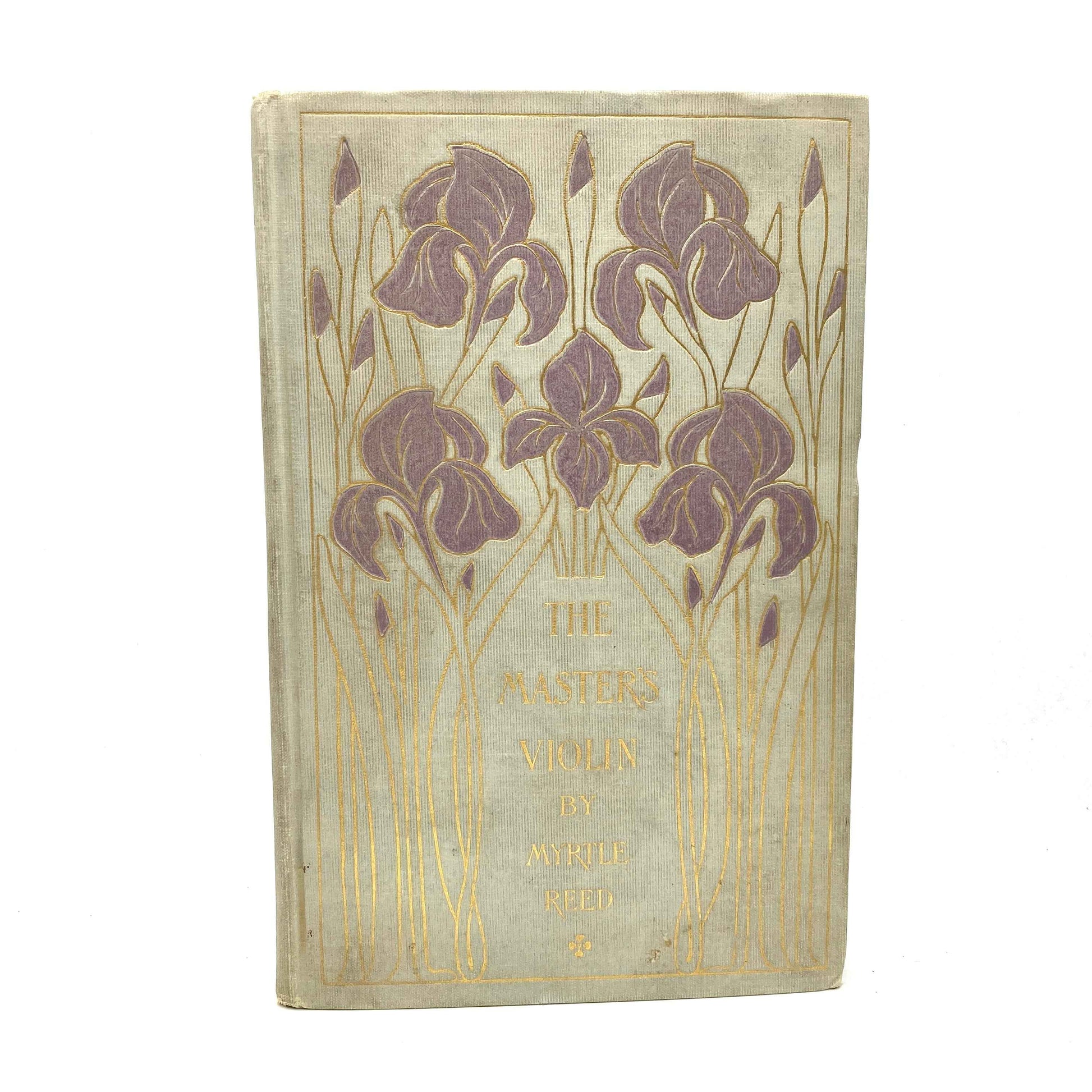 "The Master's Violin" by Myrtle Reed [G.P. Putnam's Sons, 1906]. First edition, Eleventh Printing. Cover design by Margaret Armstrong. 316pp. Soiling to the boards as pictured, both hinges starting, and former owner's embossed stamp on FFEP. Overall, Good+.
