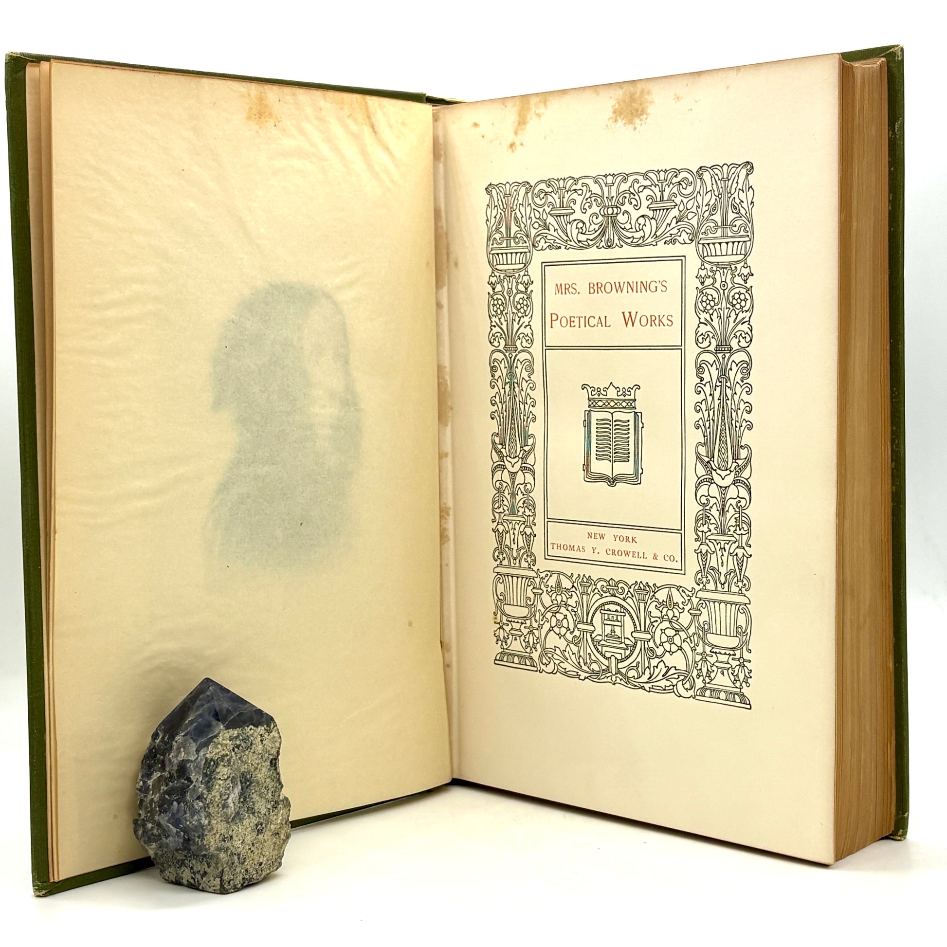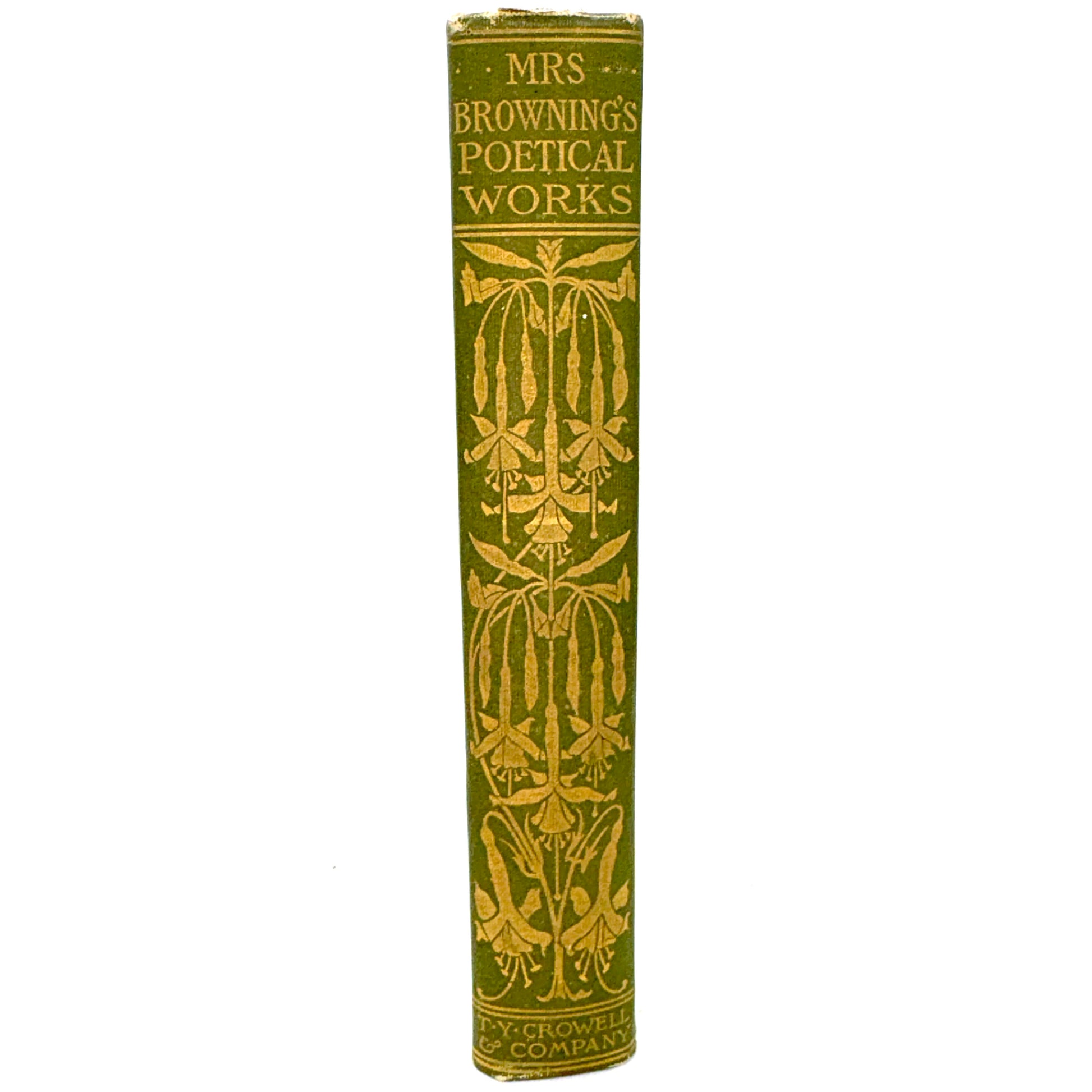 A classic Crowell gift edition, reflecting the late 19th-century vogue for richly ornamented bindings that paired canonical authors with accessible, well-produced volumes for the general reader. Elizabeth Barrett Browning’s work—particularly Sonnets from the Portuguese and Aurora Leigh—remained central to Victorian literary culture well into the early 20th century, making editions like this both widely read and enduringly collectible.