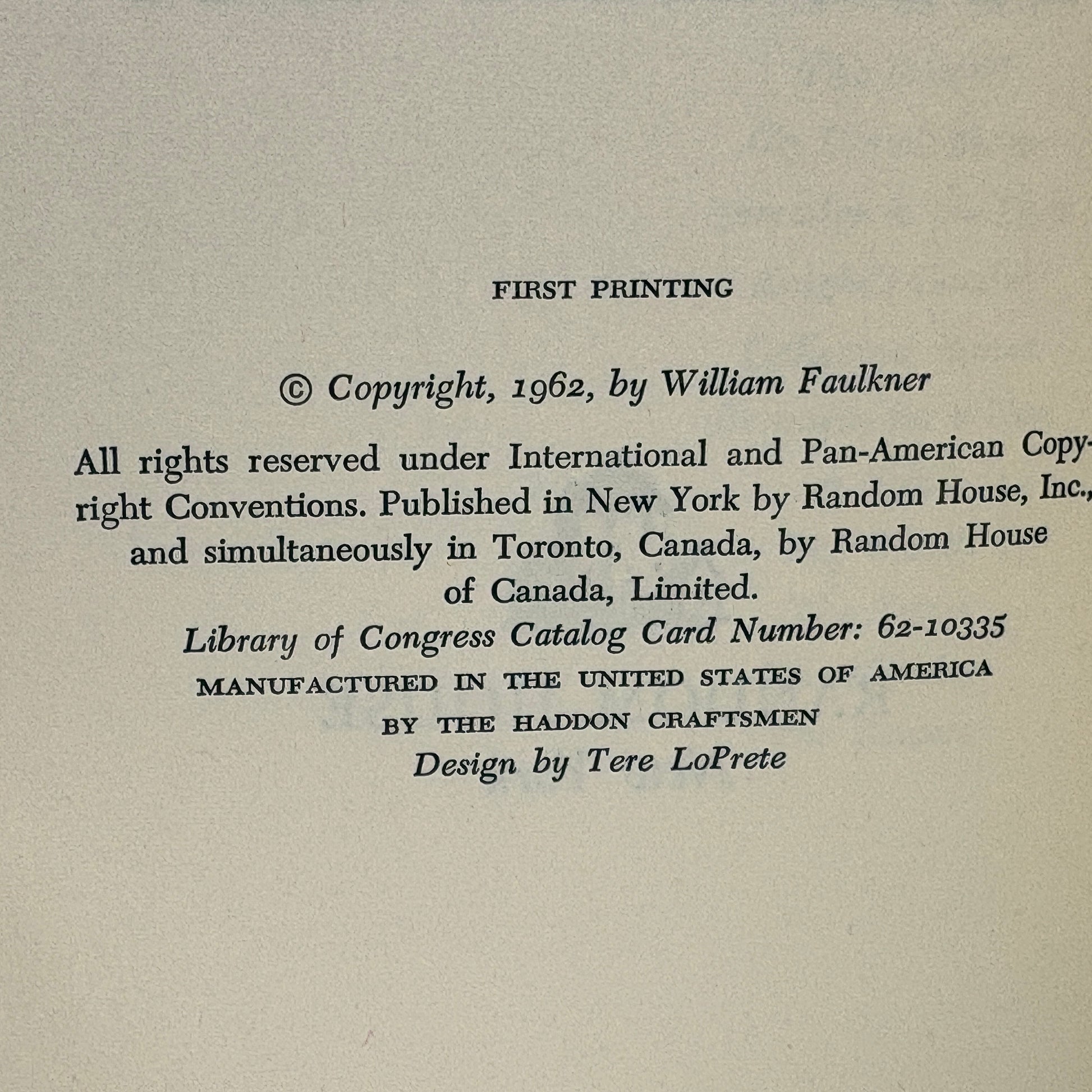 FAULKNER, William "The Reivers" [Random House, 1962] 1st Edition