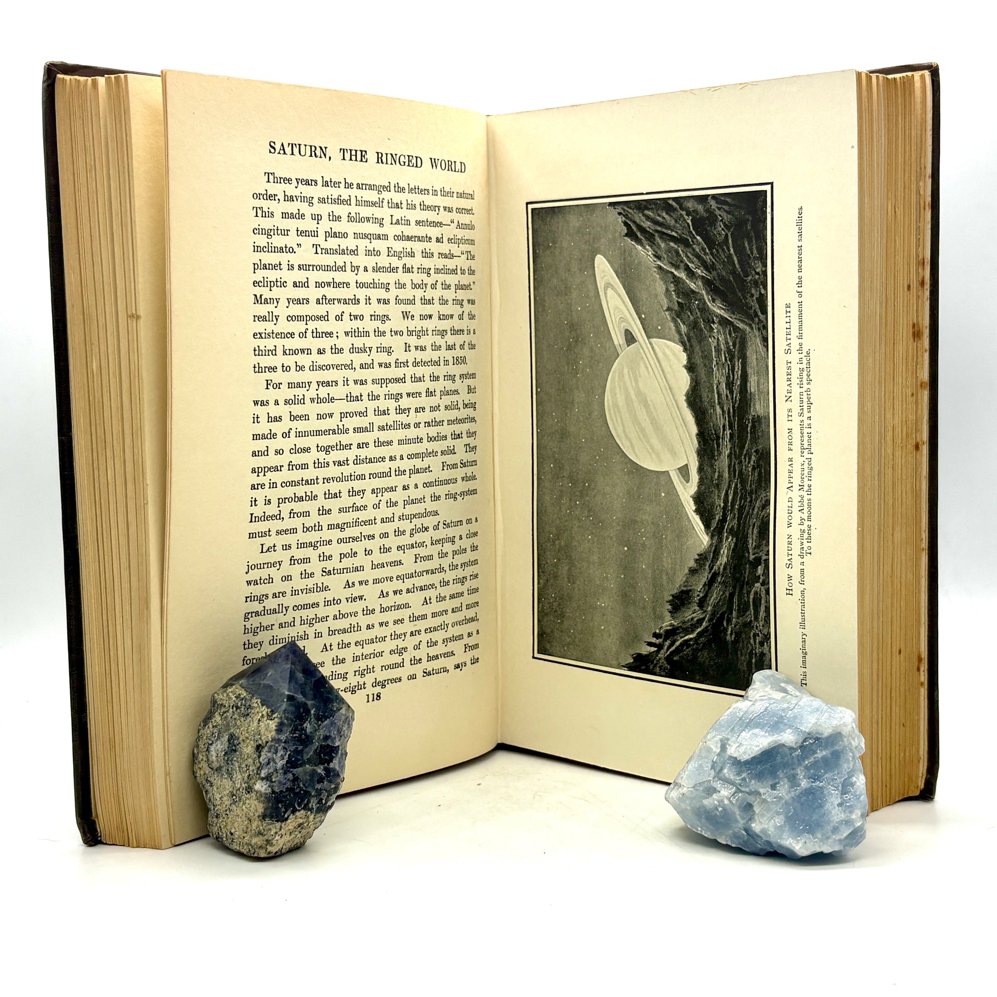 London: Seeley, Service & Co., Limited, 1927. New & Revised Edition. Octavo. 16 full-page illustrations and 8 diagrams. Publisher’s decorated blue cloth, stamped in red, black, and silver, with pictorial onlay of Saturn to upper board and elaborate spine design. A 1.5” split to exterior joint at upper edge of front cover; inner hinges secure. Edges and corners of cloth well rubbed. Penciled notes and minor foxing throughout. Good.