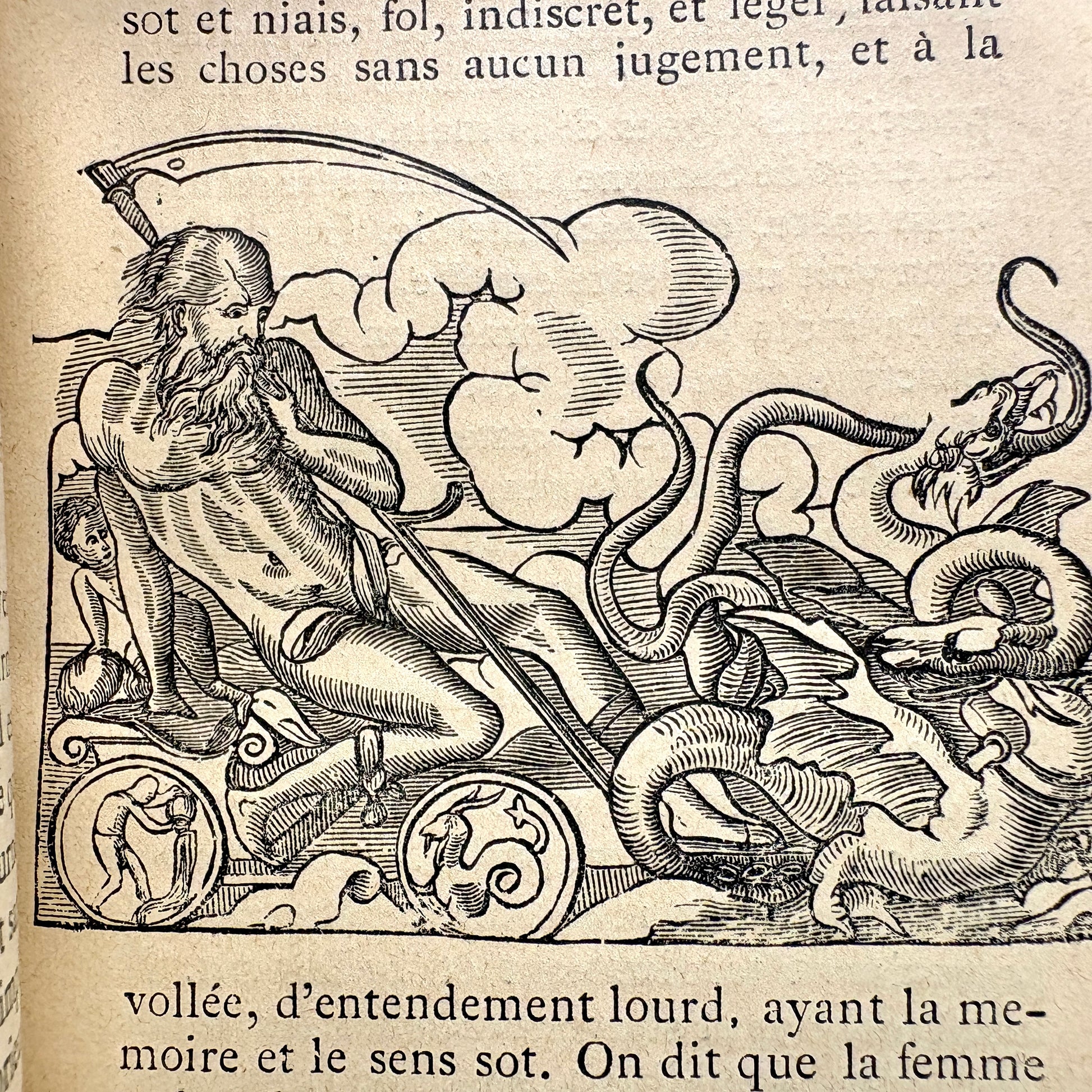 Lyon: Chez les Héritiers de Beringos Fratres, à l’Enseigne d’Agrippa, 1668 [c. 1860]. French language. 6.25" x 4". 180 pp. Quarter brown leather over marbled boards with red morocco spine label lettered in gilt; small gilt ornament at foot. Numerous woodcut illustrations throughout. Binding tight; edges of boards rubbed; minor foxing throughout. Very Good.
