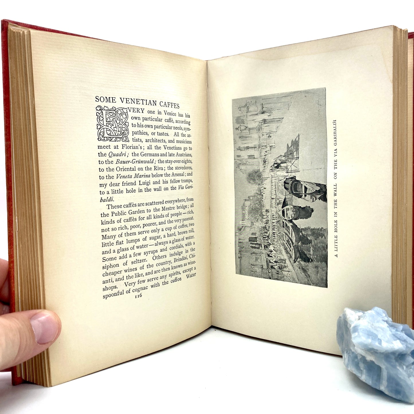 "Gondola Days" by F. Hopkinson Smith [Houghton Mifflin, 1898]. Illustrated by the author on 11 plates. Red cloth with gilt titling and gilt/black decorations. Spine sunned and titling dulled. Small signature on FFEP. Binding tight and textblock clean. Very Good+.