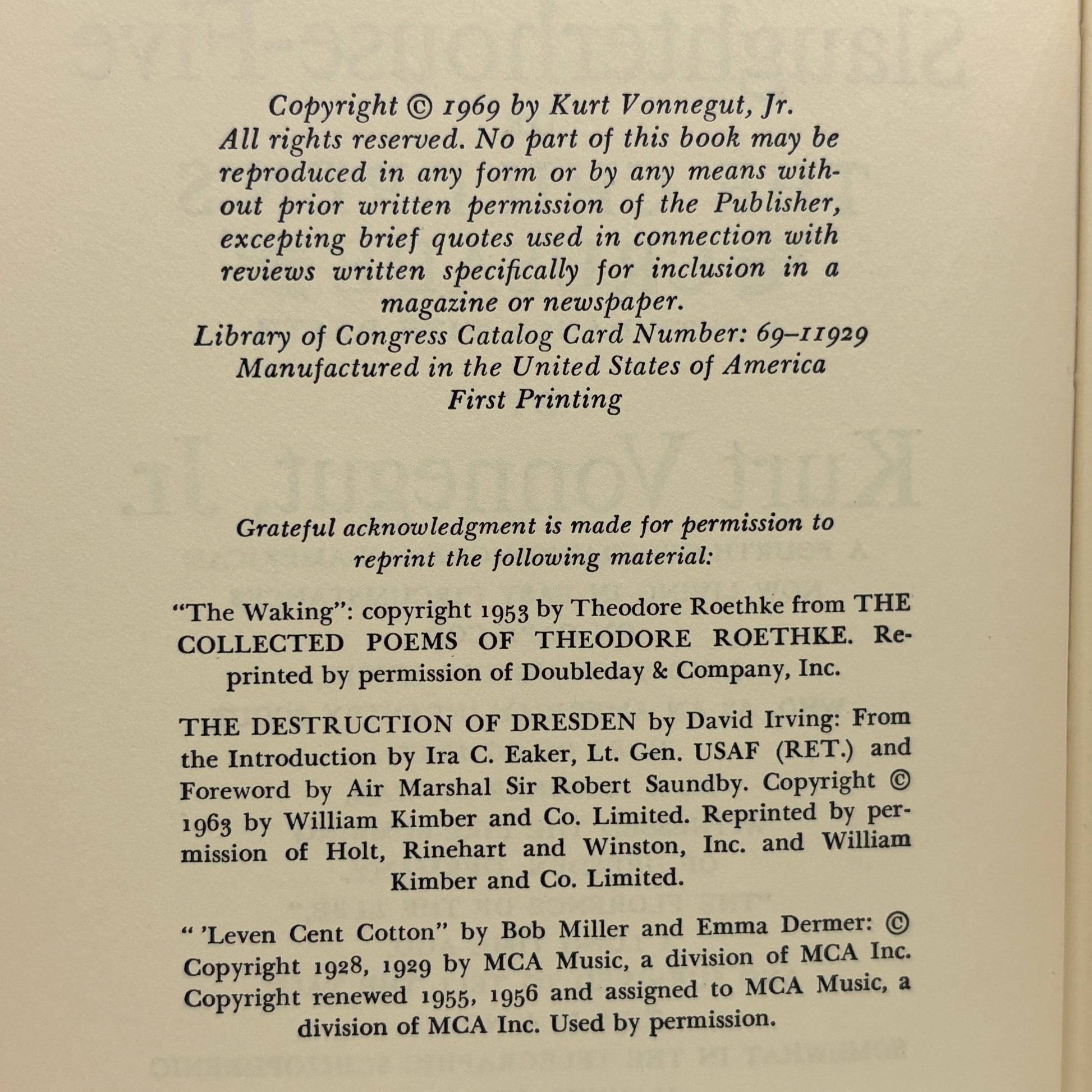 VONNEGUT, Kurt "Slaughterhouse-Five" [Delacorte Press, 1969] 1st Edition